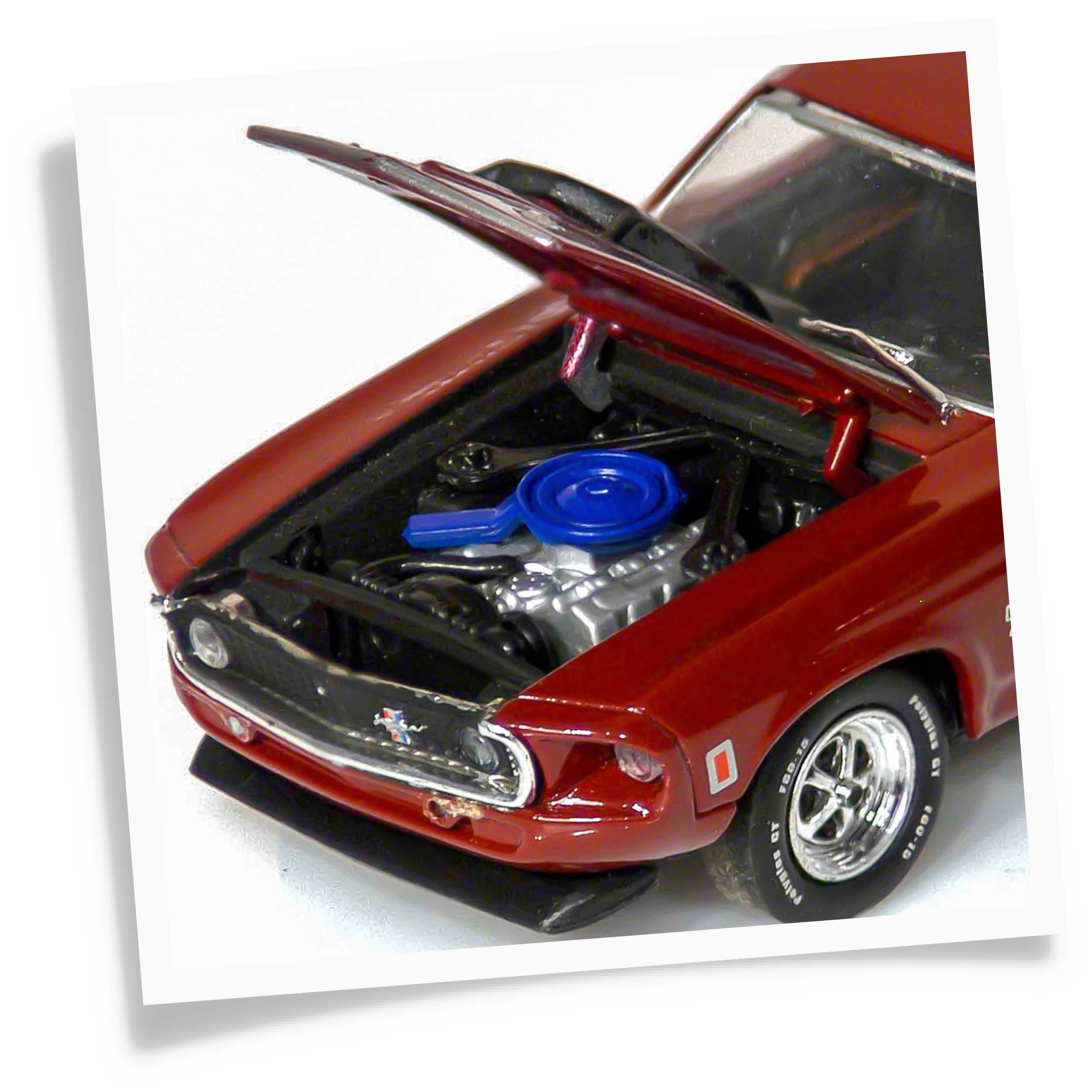 • Hood lifts to view the incredibly detailed NASCAR-bred Boss 429 Engine. The Boss 429 engine produced 375 HPP at 5,200 RPM and 450 ft. torque